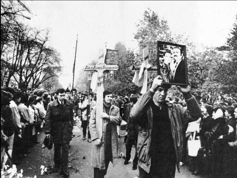 Înregistrarea pe banda magnetică, răsună vocea Doinei și a lui Ion Aldea-Teodorovici. în nenumărate acorduri ale cântecului "Suveranitate", interpretat de ei acum doi ani în chiar această Piață sunt purtate pe umeri spre Cimitirul Central de pe strada Armenească din Chișinău.