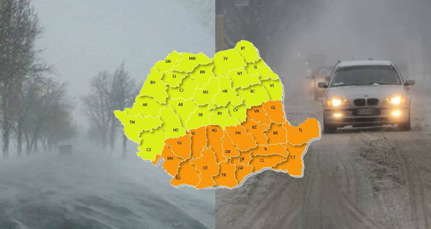 Codul portocaliu va fi urmat de COD GALBEN. Valabil în intervalul 06.01 ora 20.00 - 07.01 ora 10.00.