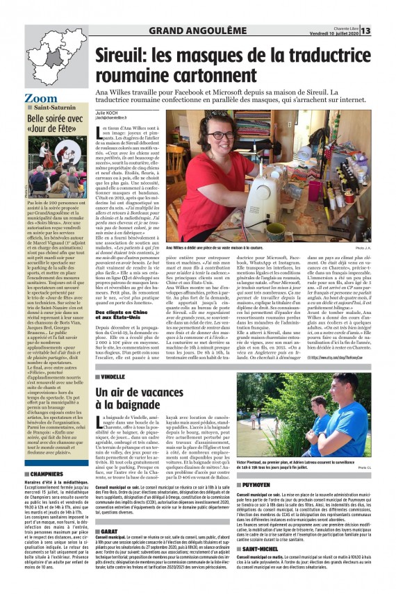 #ConstanțaEsteBine Constănțeni în presa franceză – „Sireuil - măștile traducătoarei românce sunt un mare succes”