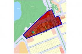 Amplasamentul are o suprafaţă totală de 477 mp, fiind liber de construcţii, având categoria de folosinţă „curţi-construcţii“ şi următorii vecini: la nord - trotuar şi strada Barbu Ştefănescu Delavrancea, la sud - teren municipiul Constanţa, la est - strada Soveja, iar la vest - teren municipiul Constanţa şi blocul 40B. Suprafaţă zonei propuse pentru studiu este de 25.350 mp şi cuprinde părţi din patru zone de reglementare ZRL4 şi o zonă de reglementare ZRL5, conform PUG-ului municipiului Constanţa. Zona studiată cuprinde terenuri aflate în domeniul public şi privat al municipiului Constanţa, precum şi terenuri private aparţinând persoanelor fizice/juridice. Amplasamentul care generează studiul PUZ-ului face parte din zona de reglementare ZRL4, identificată pe planuri ca ZRL4-A. Amplasamentul studiat şi terenul adiacent sunt utilizate, în prezent, ca parcare publică. În limitele zonei propuse pentru studiu, respectiv zona intersecţiei străzilor Soveja cu Barbu Ştefănescu Delavrancea, se află blocuri de locuinţe colective cu regim de înălţime P+4 şi spaţii comerciale.
