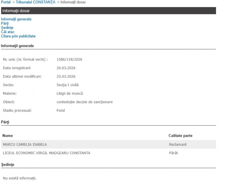 Seria conflictelor juridice dintre profesoara Marcu Camelia Isabela și Liceul Economic „Virgil Madgearu” Constanța, instituție unde este angajată, continuă la Tribunalul Constanța.