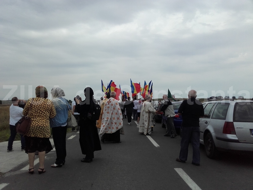 Au străbătut cinci kilometri, înfruntând ploaia măruntă, care a căzut pe alocuri, fără să îngreuneze buna desfăşurare a procesiunii, care a fost deschisă de moaştele primilor martiri din Dobrogea, sfinţii Epictet şi Astion, dar şi ale Sfântului Pantelimon.