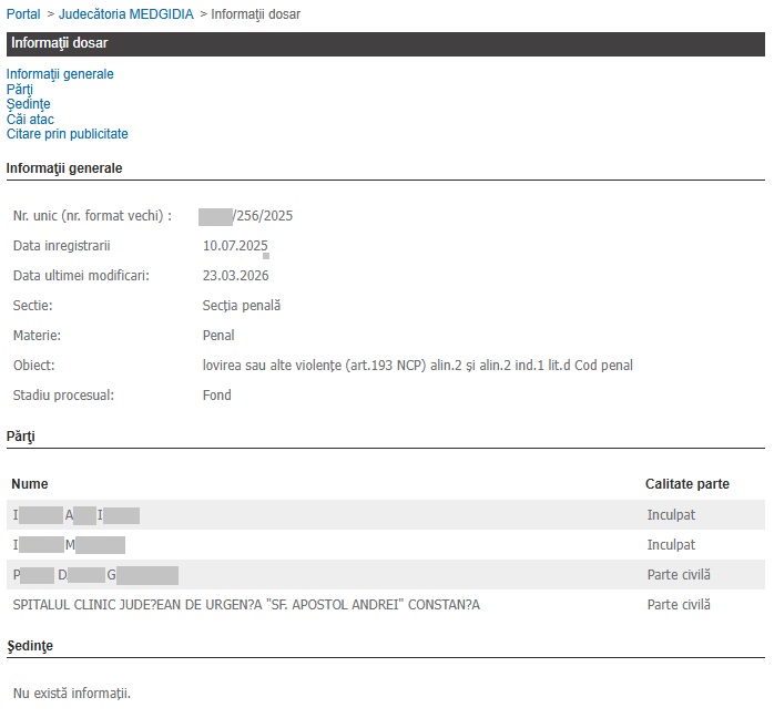 Pe rolul Secției Penale a Judecătoriei Medgidia a fost deschis dosarul în care I.A.I. este acuzat de săvârșirea infracțiunii de lovire sau alte violențe, prevăzută de art. 193 alin. (2), alin. (21) lit. d), în timp ce inculpata I.M. este acuzată pentru săvârșirea infracțiunii de complicitate la infracțiunea de lovirea sau alte violenţe, prevăzută de art. 193 alin. (2) și alin. (21) lit. d) CP, raportat la art. 48 alin. (1) CP.