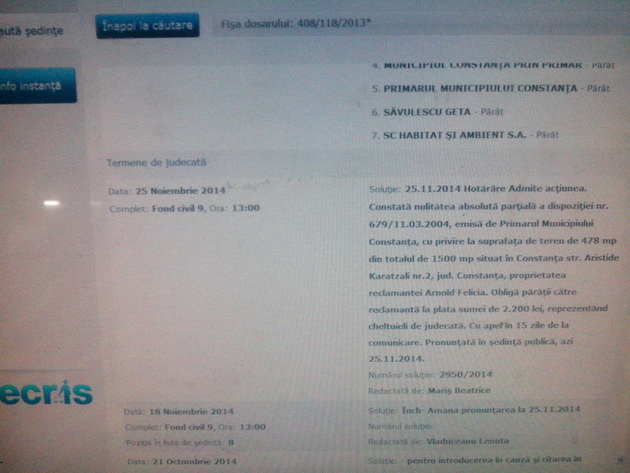 Nici această soluție nu este însă definitivă, ci poate fi atacată în apel în termen de 15 zile de la comunicare, la Curtea de Apel Constanța. Nu în ultimul rând, este de precizat că primarul Constanței, alături de Mihai Camboianu, SC Habitat și Ambient SA, Cristi Borcea, dar și de alte câteva zeci de persoane, este judecat în capitală pentru retrocedările terenurilor din Constanța, încă din anul 2008.Urmareste-ne pe Grupul de Whatsapp