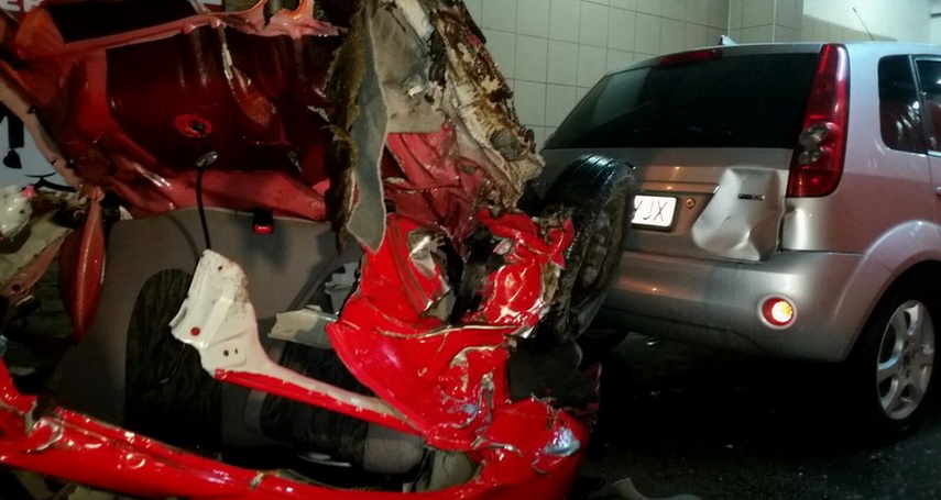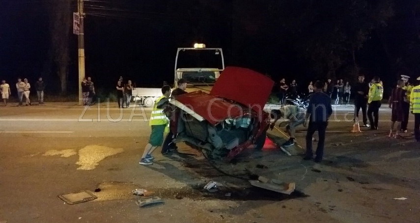 Din cauza impactului puternic, maşina care ar fi produs tragicul eveniment s-a rupt în două. Pe şosea a rămas jumătate din maşină, care a intrat pe contrasens, iar cealaltă bucată a intrat într-o spălătorie, în faţa căreia aşteptau trei persoane. În autoturismul care ar fi provocat accidentul se aflau cinci persoane. Unul dintre bărbaţi a rămas încarcerat în jumătatea maşinii de pe şosea.