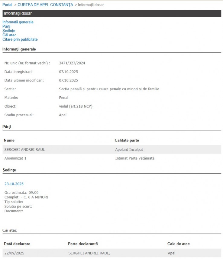 Inculpatul a contestat decizia instanței de fond, fapt pentru care cazul va intra în atenția Curții de Apel Constanța, instanță abilitată să soluționeze cauza definitiv. Potrivit Portalului Instanțelor de Judecată, magistrații au stabilit termenul de judecată la finalul acestei luni.