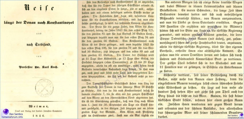 [4] 1843: Karl Koch: „Reise längst der Donau nach Konstantinopel und nach Trebisond“. A fost un botanist german şi unul din întemeietorii dendrologiei.