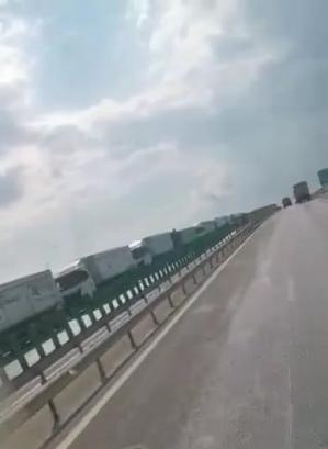 Trebuie să spunem că din cauza maşinilor care aşteaptă intrarea spre port circulaţia este, efectiv blocată.