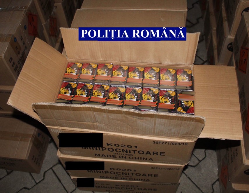 Articolele pirotehnice erau depozitate în două autoturisme care ar fi aparținut administratorului societății comerciale.