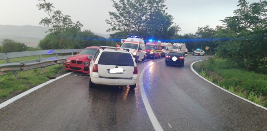 În urma accidentului a rezultat rănirea a doi pasageri din primul autoturism.