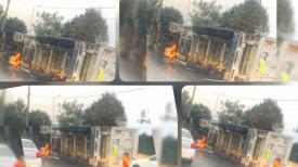 Un tir încărcat cu fier vechi s-a răsturnat. A rezultat o victimă conștientă.