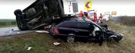 Accident în judeţul Olt. Un microbuz răsturnat, un autoturism în şanţ. Patru persoane au fost rănite (galerie