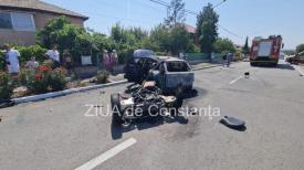 UPDATE: Accident în Valu lui Traian. Două victime. Maşinile au intrat în gardul unui magazin de piese auto