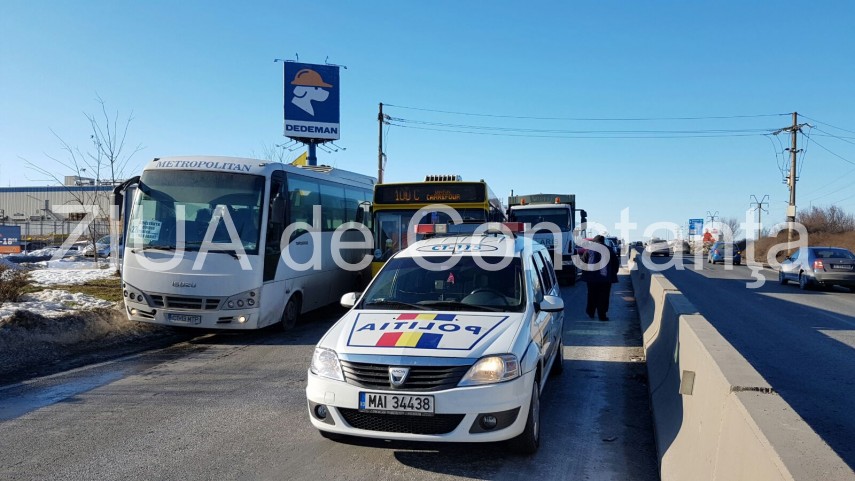 Cu puţin timp în urmă, un accident rutier a avut loc pe bulevardul Tomis, la ieşirea din Constanţa, lângă Dedeman. Trei autovehicule au intrat în coliziune. Este vorba de o maşină de gunoi, un autobuz al Regiei Autonome Judeţene de Transport în Comun Constanţa şi un autoturism.