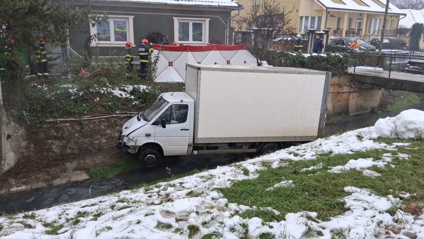 Un șofer a decedat, vineri, 16 ianuarie 2026, după ce a căzut cu autoutilitara în pârâul Peța din Băile Felix.