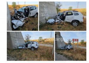 Accident mortal la ieșire din Medgidia spre Valea Dacilor! Un șofer a murit după ce a intrat cu mașina într-un cap de pod (FOTO+VIDEO)