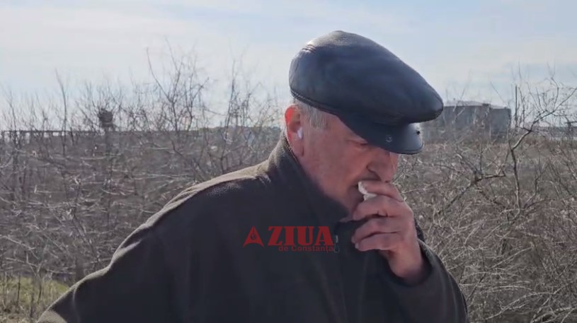 Vizibil îndurerat și cu vocea sugrumată de lacrimi, bărbatul abia poate să spună câteva vorbe.