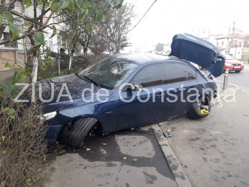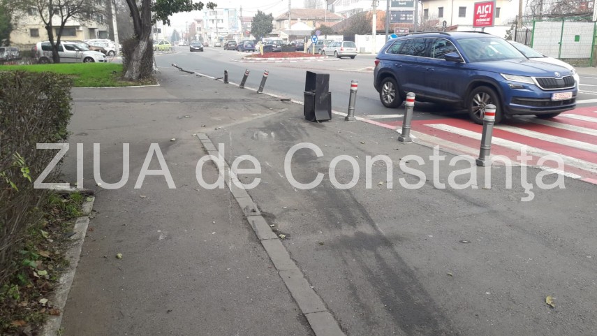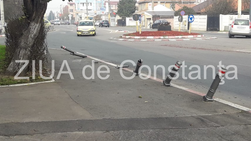 Accident pe bulevardul Aurel Vlaicu: Un tânăr băut a sărit sensul giratoriu, a ras stâlpișorii și a doborât