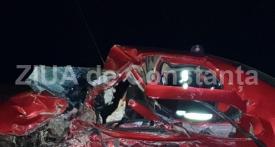 Polițiștii deplasați la fața locului au constatat că impactul s-a produs între un autoturism și un microbuz de transport persoane, care ar fi circulat din sensuri opuse.
