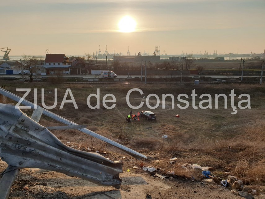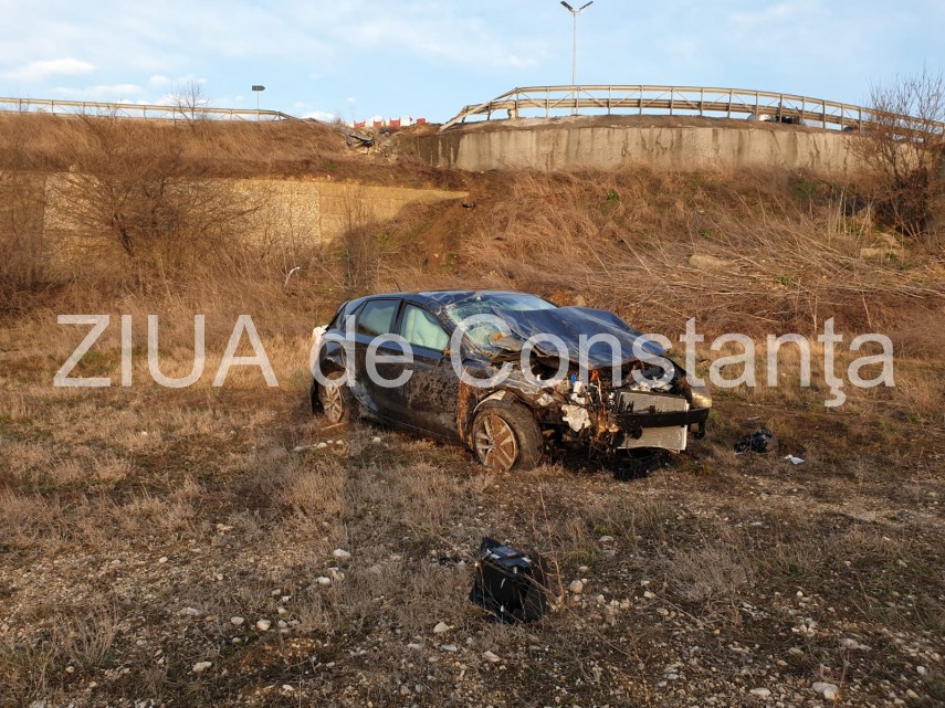 Accident rutier grav la la ieşire de pe Autostrada A4 spre Port Constanţa. Cu maşina în râpă. Şoferul este medic (galerie foto+video)