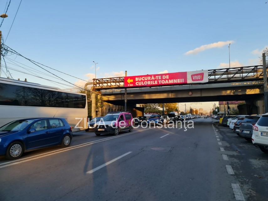 Facem precizarea că, traficul, dinspre intrare în Constanța, pe ambele bezni e blocat din cauza stâlpului, iar pe sensul dinspre Cora spre ieșire Constanța se circulă pe o singură bandă, se dă drumul alternativ să treacă mașini. S-au făcut blocaje în trafic.