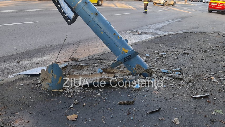Accident rutier în Constanța. Un autocamion încărcat cu vată minerală a intrat într-un stâlp (GALERIE FOTO+VIDEO)