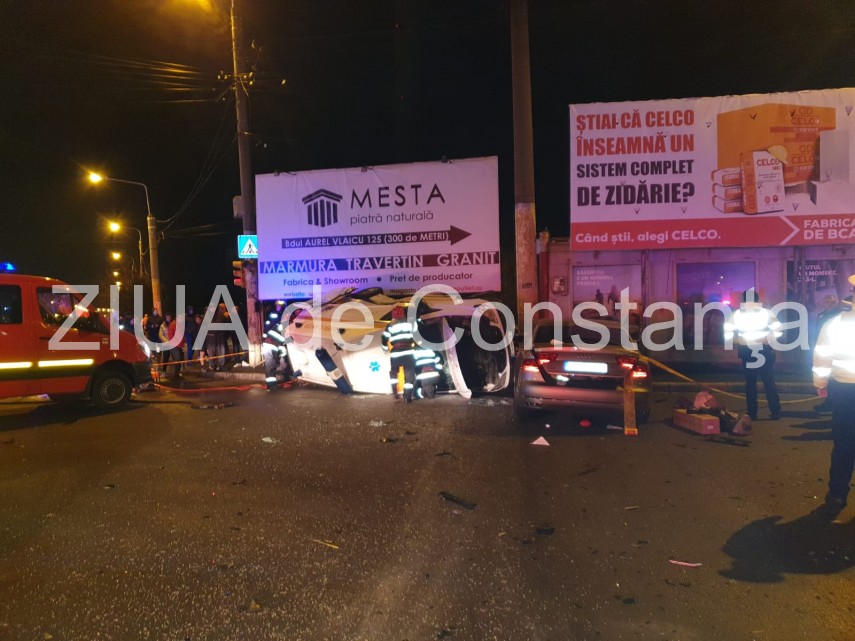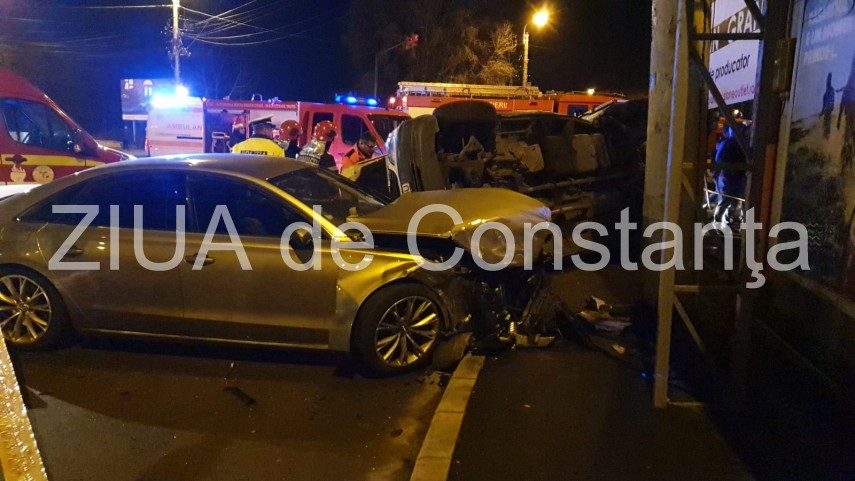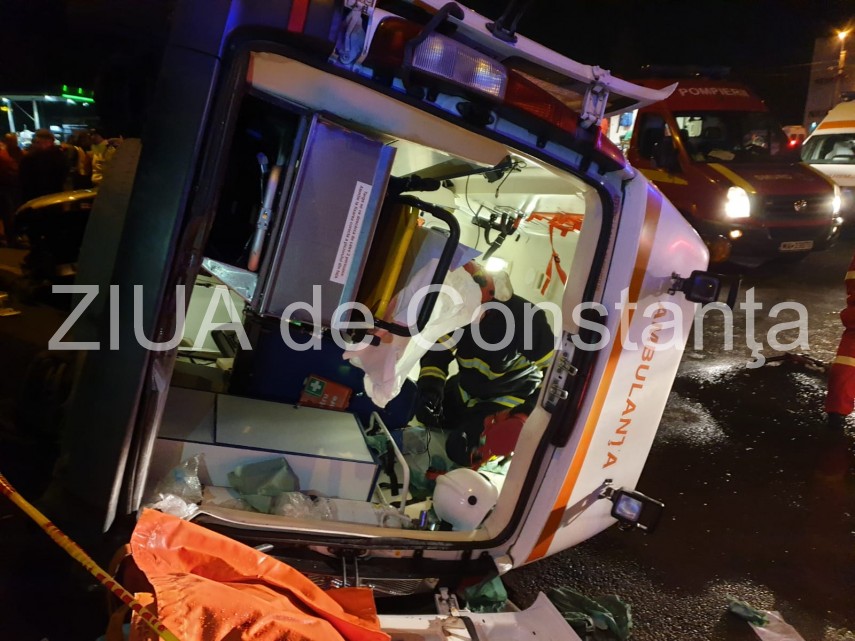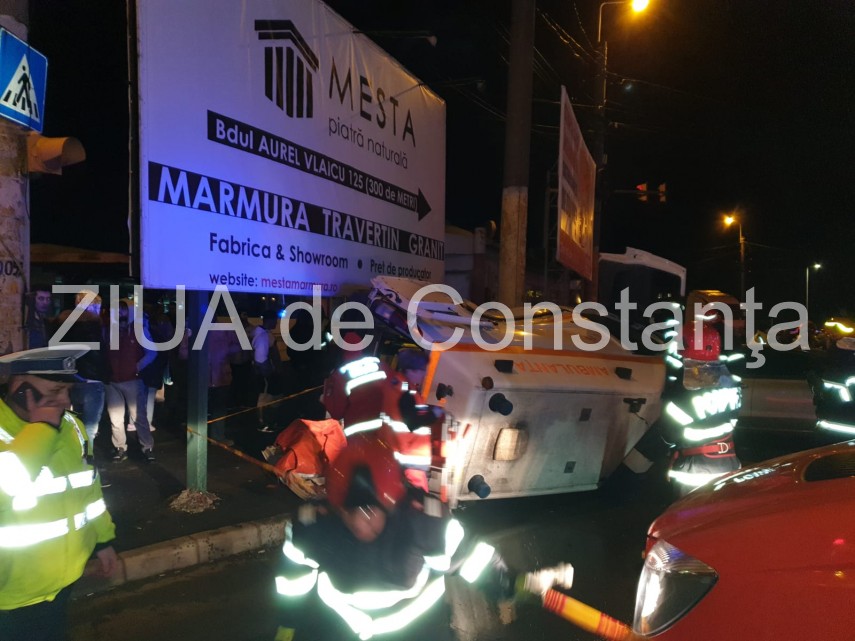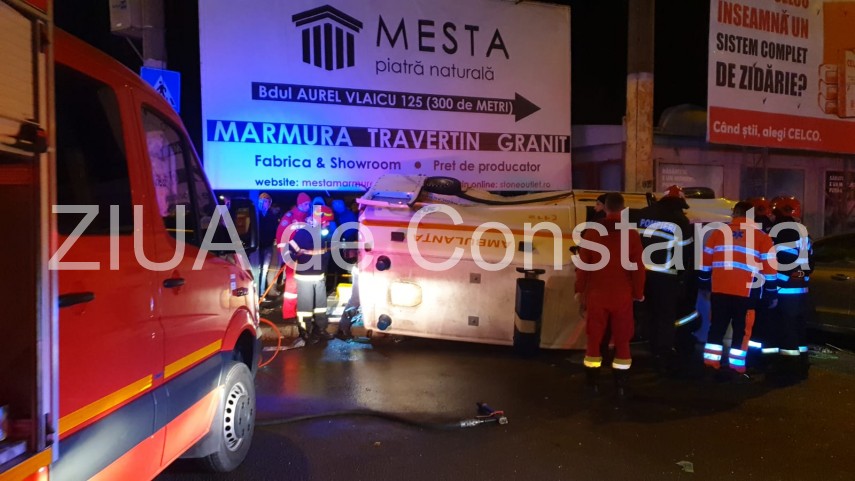 Accident rutier în zona CET din Constanța. O ambulanță răsturnată. Patru victime (galerie foto+video)