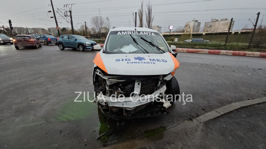 UPDATE: Accident rutier între o ambulanță și un autoturism de curierat, la Poarta 6, Constanța. O victimă,