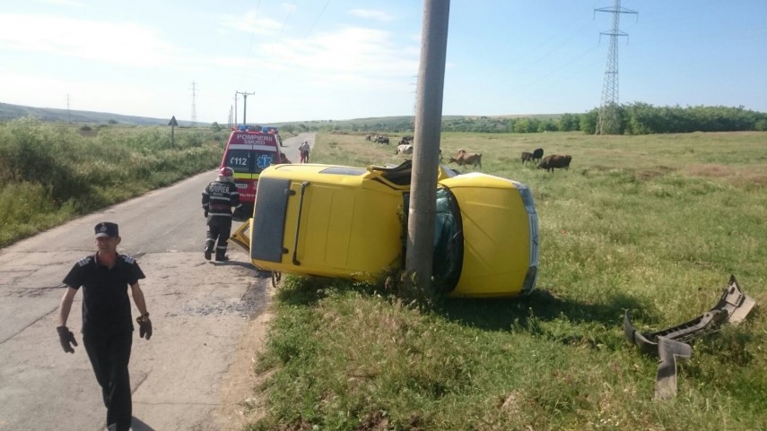 Accident rutier între Peştera şi Ivrinezu Mare. O maşină s-a răsturnat. Şoferul era băut (galerie foto)