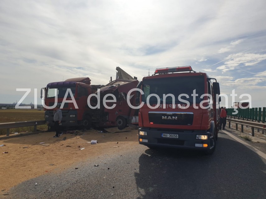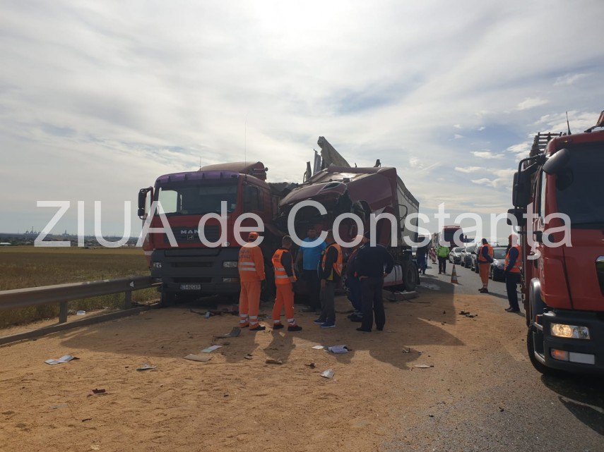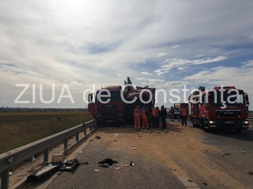 UPDATE: Accident rutier pe A4 între două tiruri. Două persoane rănite (galerie foto+video). Ce spun autorităţile