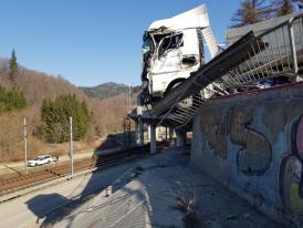 O cisternă încarcată cu 23 tone motorină și 11 tone benzină a acroșat un stâlp electric, fără scurgeri, avarii doar la cabină.