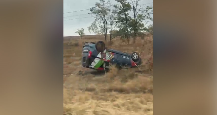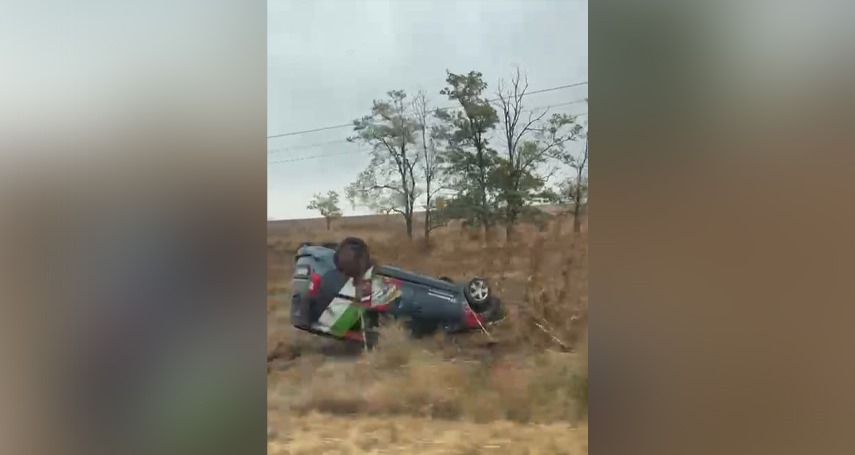 Accident rutier pe DN22, la intersecția cu Sibioara: Un autoturism s-a răsturnat în afara părții carosabile.