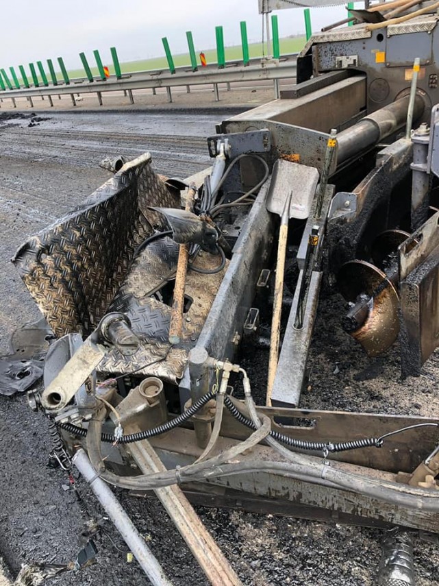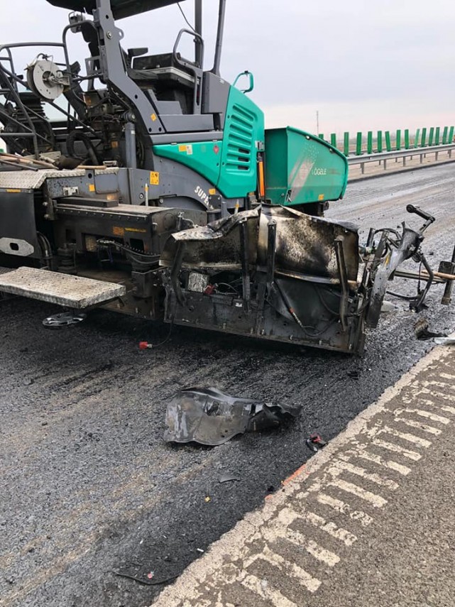 Incendiu pe Autostrada Soarelui, după ce un autoturism s-a răsturnat peste două utilaje grele (galerie foto + video)