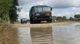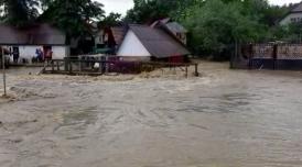 •În județul Brașov, localitatea Paltin: un râu a ieșit din albie și a inundat 10 curți.