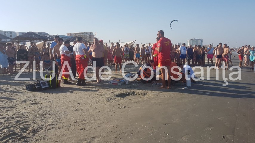 - Medicii efectuează protocolul de resuscitare unui bărbat scos din apele mării, astăzi, pe plaja Bamboo din Mamaia Nord.