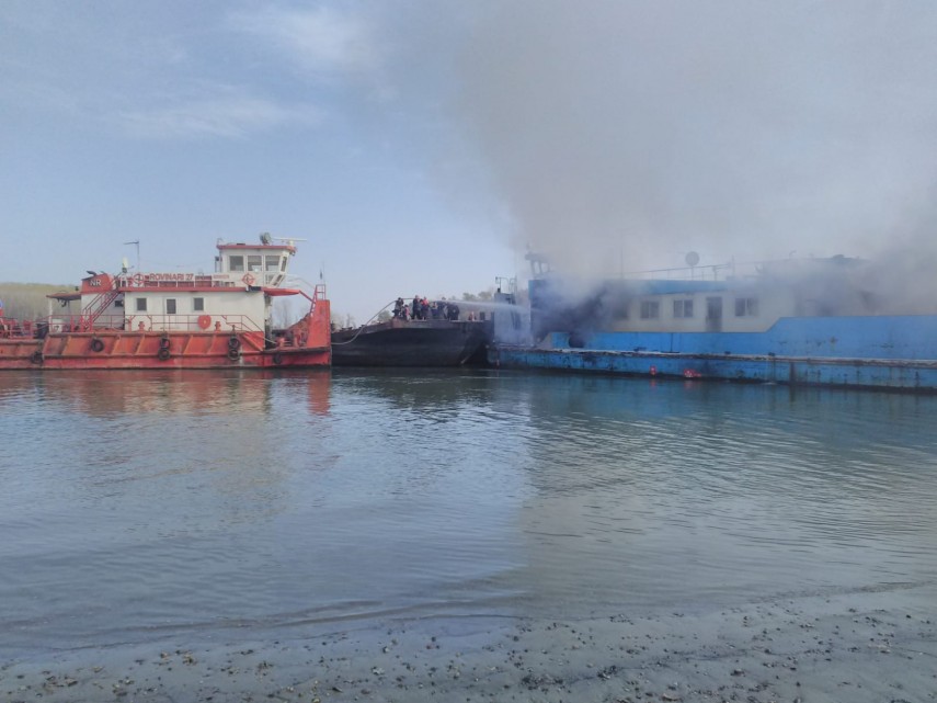 Arde o barjă, încărcată cu bauxită. Forțe impresionante la intervenție (galerie foto+video)