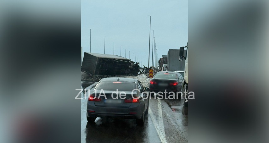 Atenție, șoferi! TIR răsturnat pe șoseaua de centură Otopeni - Chitila. Traficul se desfășoară cu dificultate