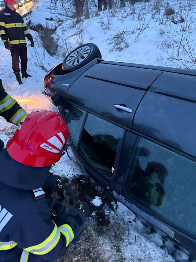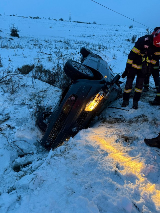 Autoturism răsturnat, în apropiere de Atmagea, județul Tulcea. O persoană, încarcerată (FOTO)