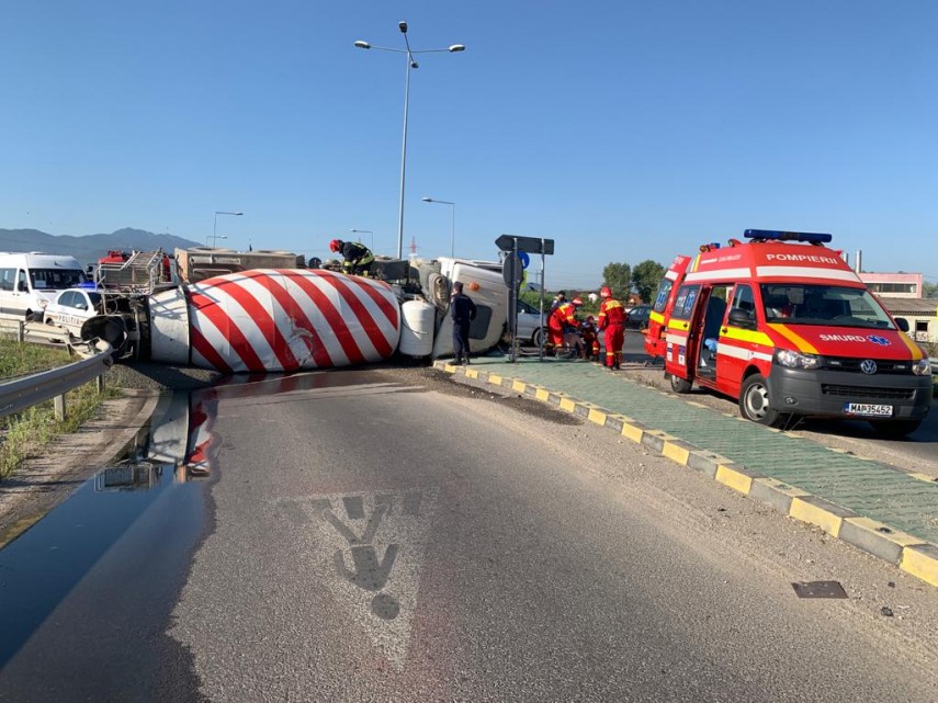 Betonieră răsturnată între localitățile Brașov si Sânpetru