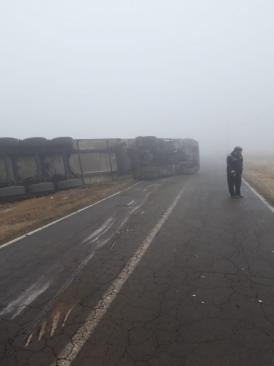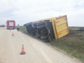 În cursul acestei dimineți, un camion încărcat cu cereale s-a răsturnat în Nodul Rutier Drajna al Autostrăzii A2.