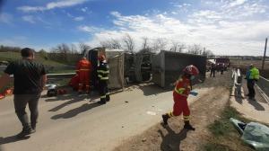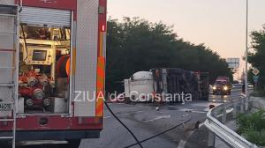 Camion cu cereale răsturnat în Nodul Rutier Drajna al autostrăzii A2. Ce măsuri s-au luat (galerie foto)