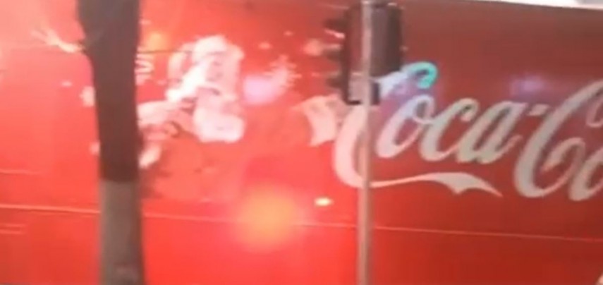 Un TIR publicitar al lui Moș Crăciun a izbucnit în flăcări!