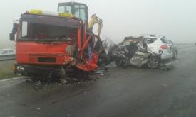 Carambol pe autostradă!: Două autocamioane s-au ciocnit şi au ricoşat în patru autoturisme. Victimele, transportate