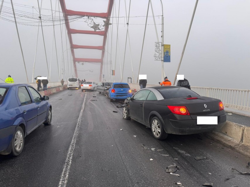 Potrivit ISU Dobrogea, în accident au fost implicate 8 persoane. Niciuna dintre acestea nu necesită îngrijiri medicale. Pe pod s-a format polei. Au fost anunțați reprezentanții de la Drumuri Naționale care vor acționa cu material antiderapant.