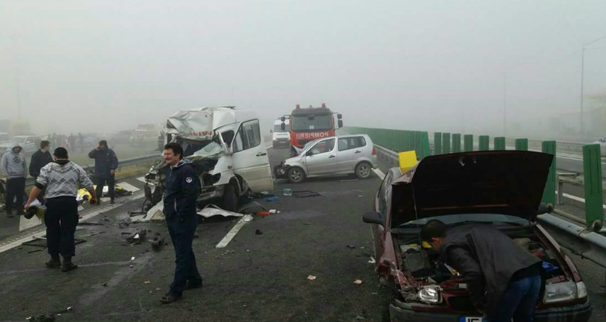 Ilie T., instructor auto de profesie, primul şofer implicat în tragedia rutieră, a declarat că, din cauza ceţii, a redus viteza, după care a aprins luminile de avarie. „Aveam toate luminile aprinse. (...) După cinci secunde de când am intrat în peretele ăla de ceaţă, m-a lovit cineva din spate, care a venit cu cel puţin 80 de km/h. Nu mă simt de vină cu absolut nimic, eu am respectat ce am învăţat”, a mai spus Ilie T., potrivit Antena 3.