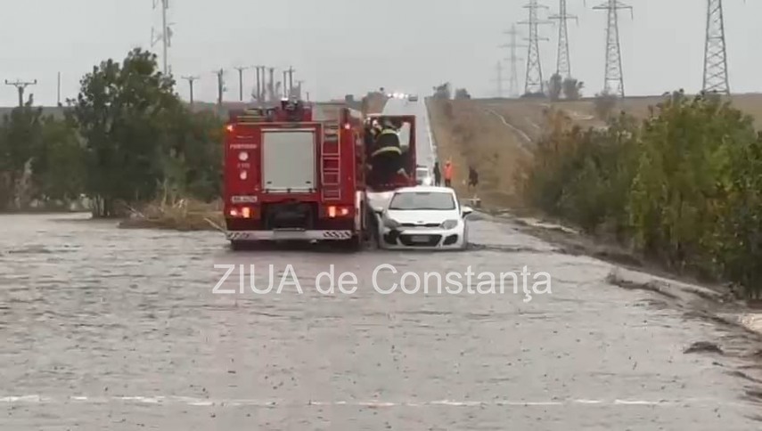 Cod roșu la Constanța Alte două persoane, surprinse de viitură pe plafonul unei mașini, salvate de pompieri (FOTO+VIDEO)