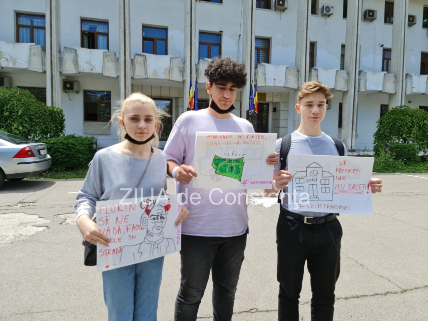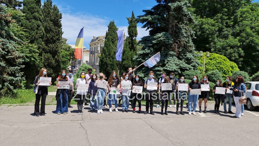 Constanța. Elevii protestează în fața Prefecturii (video)