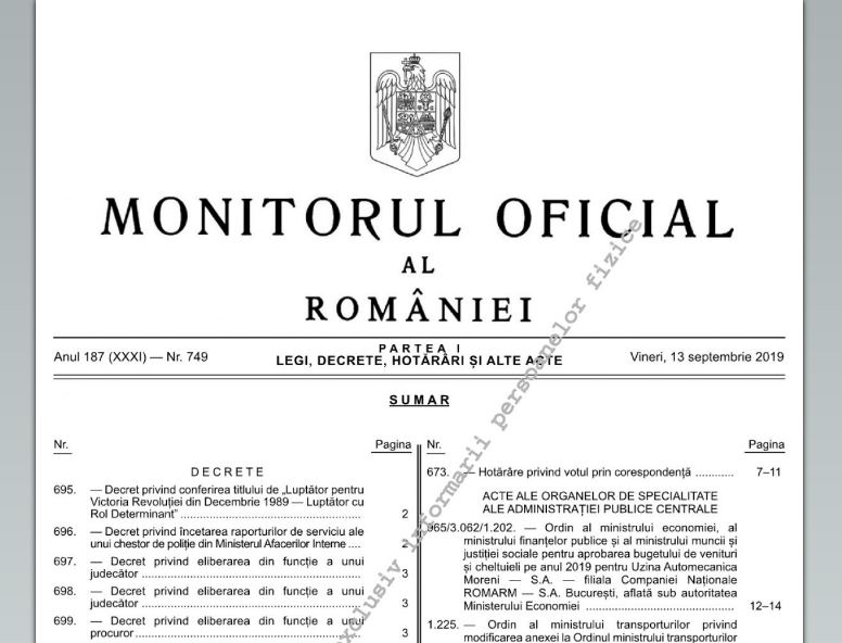 Facem precizarea că toate cele patru decrete, având numerele cuprinse între 696 şi 699 au fost publicate în Monitorul Oficial al României Partea I numărul 749 din 13 septembrie anul acesta.