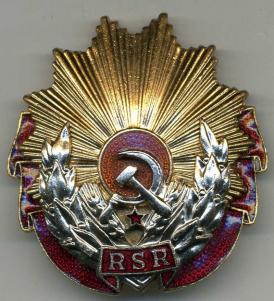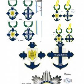 Tot pe revers, de capul acvilei este atașat un dispozitiv de prindere, de formă trapezoidală, terminat, în partea de sus, cu un inel cu diametrul de 15 mm, ambele aurii, de care este legată o panglică din rips moarat, lată de 30 mm, cu trei benzi verticale, de câte 10 mm lățime, alternând albastru-auriu-roșu; panglica are, pe revers, un sistem de prindere.