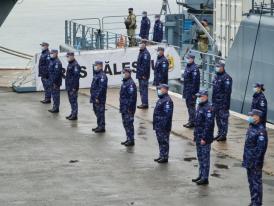 Atunci când nu se poartă emblema descrisă mai sus, se poate purta o baretă din rips moarat, de formă dreptunghiulară, cu dimensiuni de 30 x 10 mm, cu trei benzi verticale, de câte 10 mm lățime, alternând aur-albastru-aur. Materialul baretei este pus peste o placă din inox austenitic, de formă dreptunghiulară, cu grosimea de 2 mm, ce are, pe revers, un sistem de prindere.